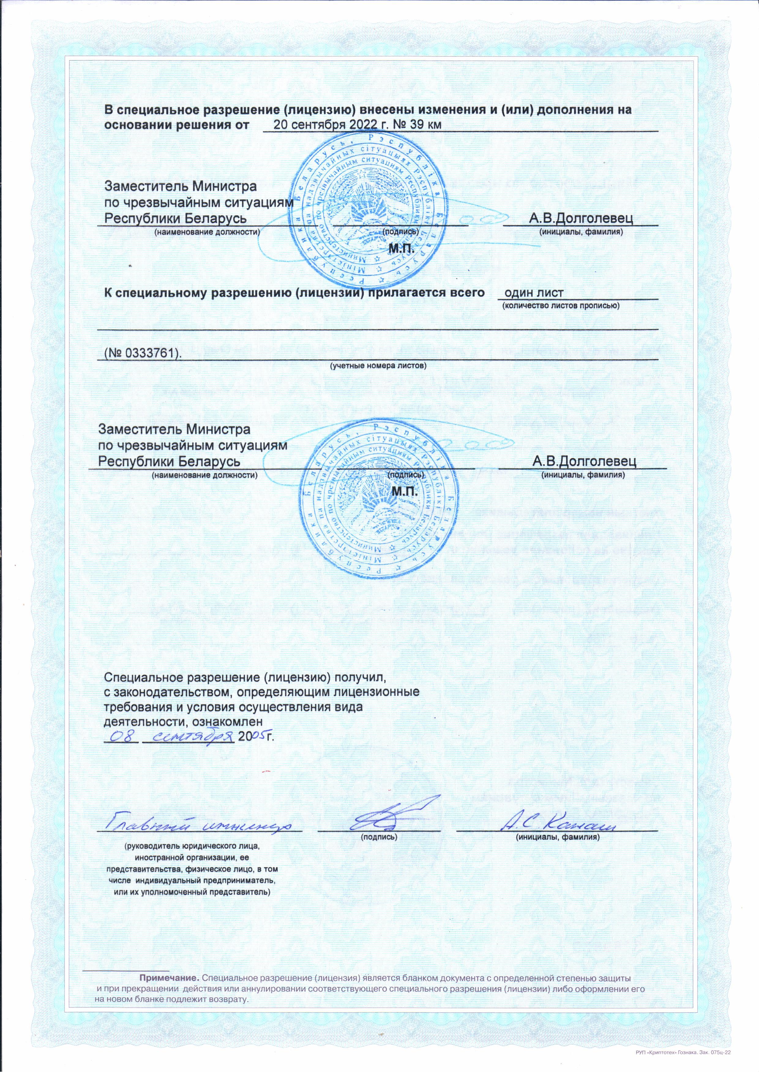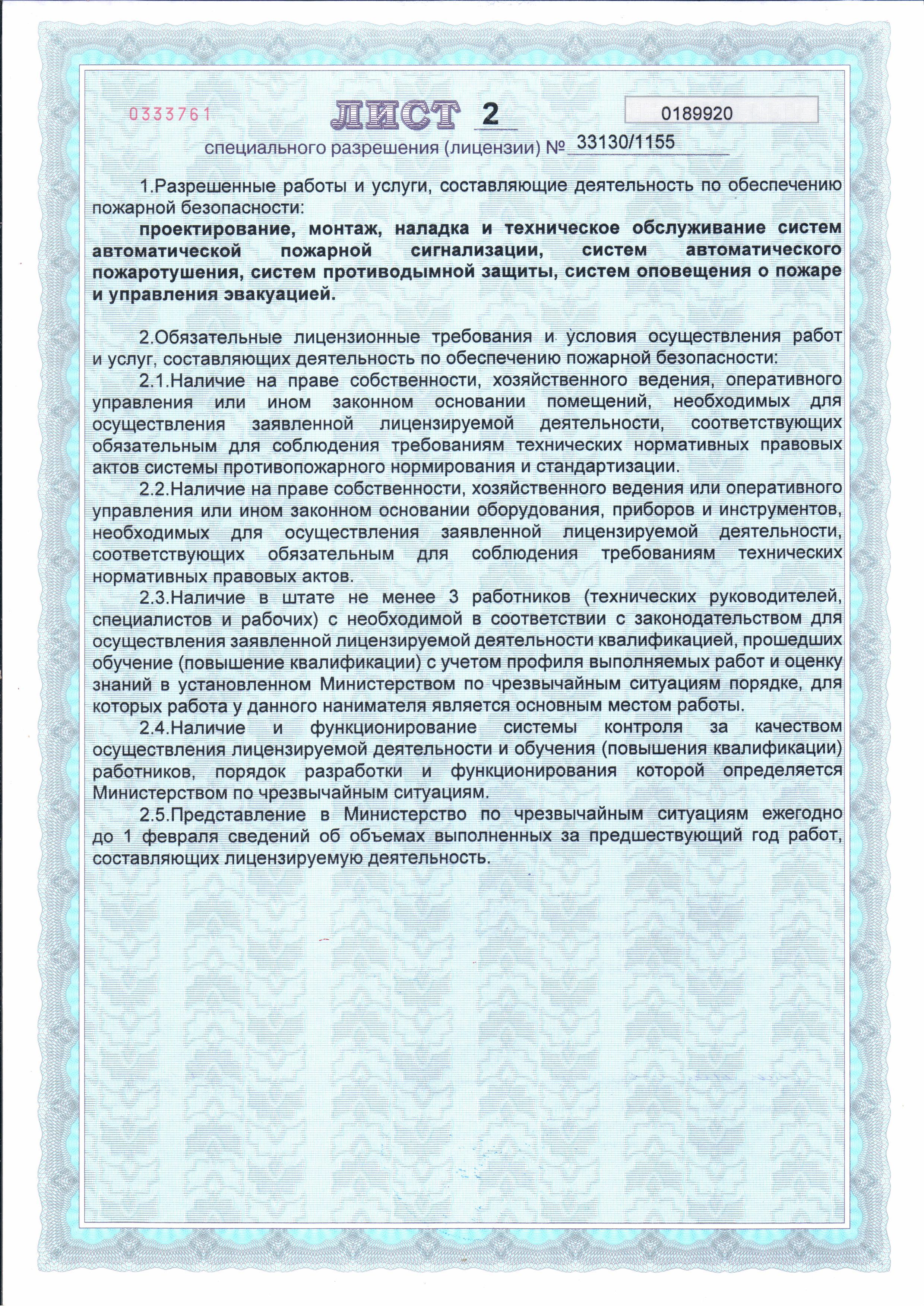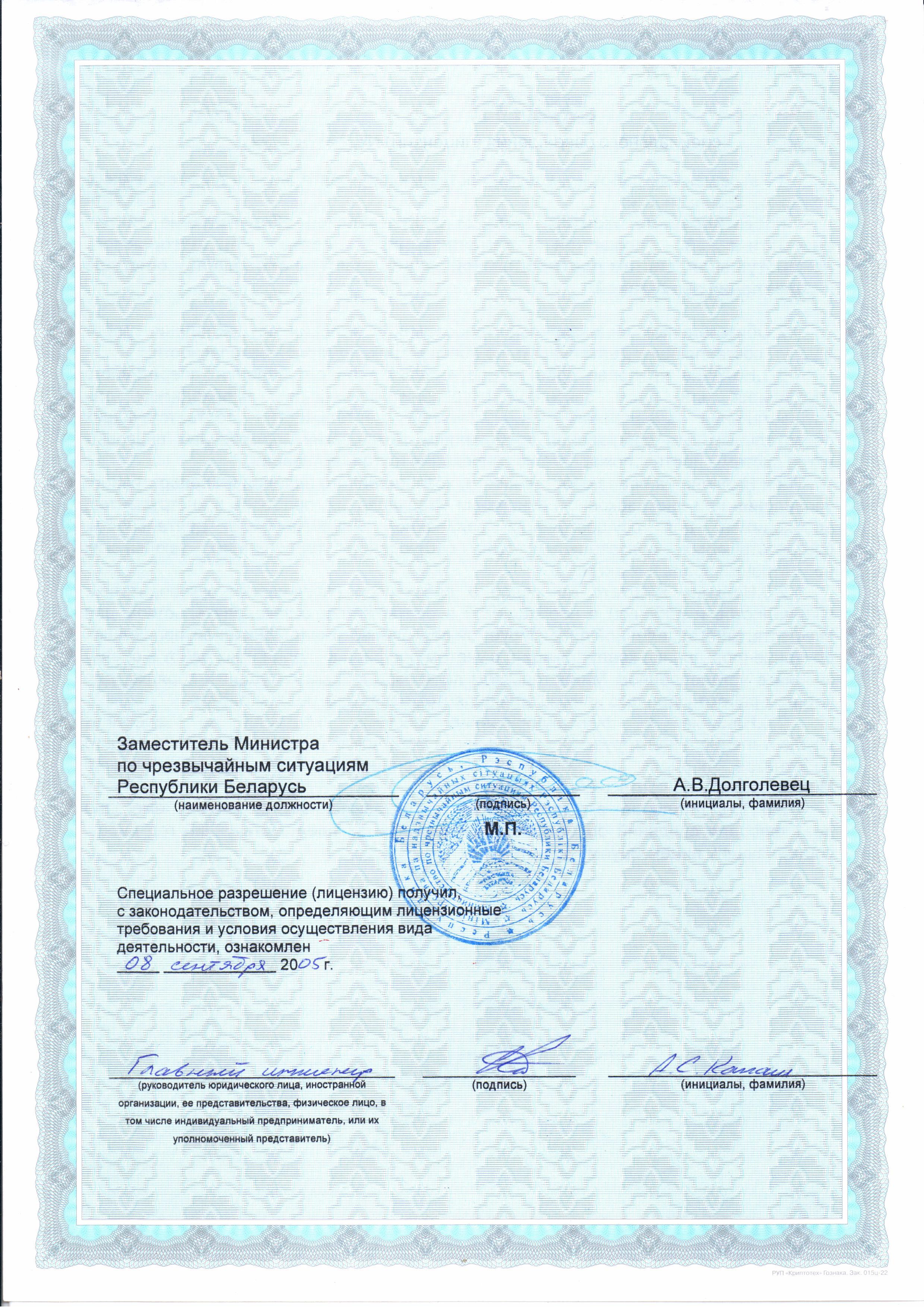 Работы выполняются на объектах любой степени сложности, включая особо важные и режимные объекты. Предприятие имеет разрешение на осуществление деятельности с использованием сведений, составляющих государственные секреты, выдаваемого органами государственной безопасности Республики Беларусь.